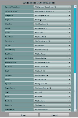 I could be mistaken, but it also appears that the list of Animations and Gestures has been increased significantly. I certainly don't remember a Fart animation before!