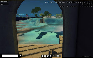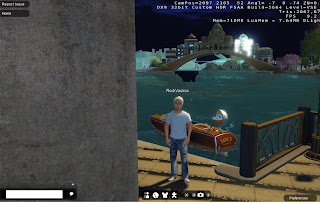 I also noticed a strange alpha problem. You see that archway that my shadow is pointing towards? Well, if I swing my camera around (using right-mouse button down, and dragging the mouse), so it looks our from inside that archway, then not only do the boat, railings, water, and other objects disappear, but I do too! In the third screenshot you can see my name-tag is still there, and my shadow, but not me!