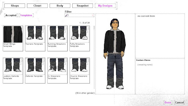 It also severely limits user-created content, which will discourage many others from making vSide their virtual home. At present, user-created content is limited to creating clothing in the built-in editor, accessible via the My Design tab after hitting F5 to get into your wardrobe. Textures for new clothing items are created offworld, in programs such as Paint, Photoshop or Gimp. Once an item has been created, it needs to be submitted to vSide for approval, who will then pay you 100vBux, and your work is then theirs forever.