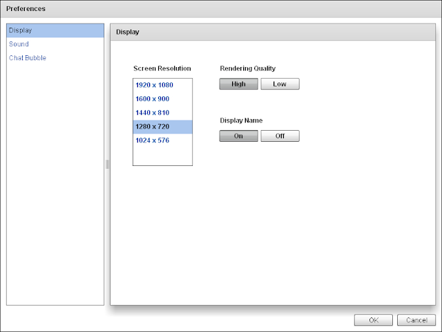 | Display Name: | On: Display your avatar's name overhead. Off: Hide your avatar's name overhead (but others will still see it). |