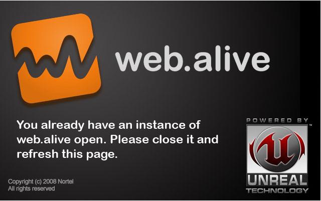 I also found, unlike 2D websites, I could not have more than one instance of web.alive open at the same time, for comparisons. When I tried, I got this:
