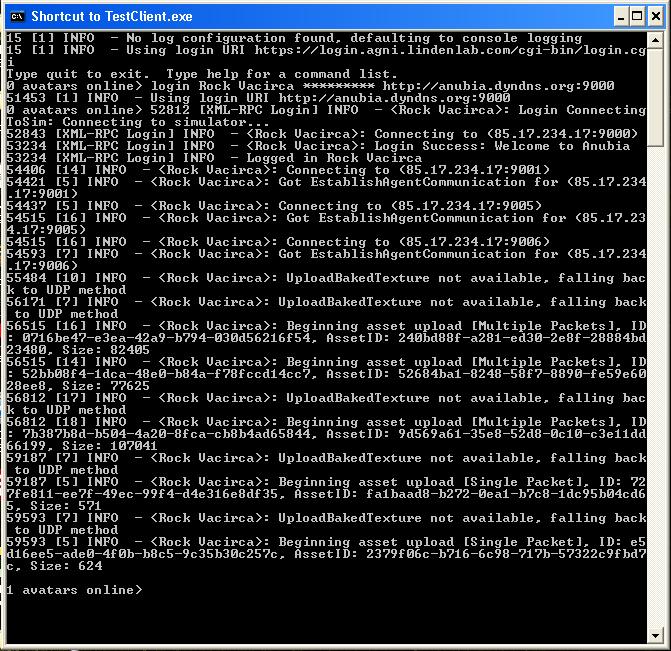 3. Although the TestClient says 'Type help for a command list' it will not work, until after you have logged in an avatar.