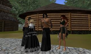 Well, I was wandering about pretty aimlessly until I came full circle back to the reception building to find Breezy and the other woman, Tessa Mureaux. I decided to question Breezy about the grid and she called the leader and had him TP in to talk to me. This was Aramil Ewing. one time leader and founder of the Askari Mercenaries in SL Gor. He told me that this all started out as a hobby when he and friends decided to setup their own Opensim grid. They chose to run a role play based on Gor because that is what they all enjoyed in Second Life but in Opensim they felt they could manage it better and more by the book so to speak which loosely means they make rules and laws based on common events found in the Gorean novels - all 27 of them. Aramil explained, "All of us, well the 90% of the users here has been on SL. I was a role play gamer even before I joined SL, when D&D was done in pen and paper, as well a deoria. Our aim is to develop a planned world, thinking of a true MMORPG."