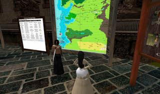 Aramil called me over to a large map of Gor which is taken from the web and most Goreans accept as a true representation of their world. The map was overlaid by a numbered grid and Aramil said, "We choose that one because the names of the cities are on it and kind of more by books. Still there are some SL add-ons like Midgard, but was a good one to start with. Each rectangle you see there is a sim location so we use it as guide to know where and how to terraform and build the sim located in a defined spot.